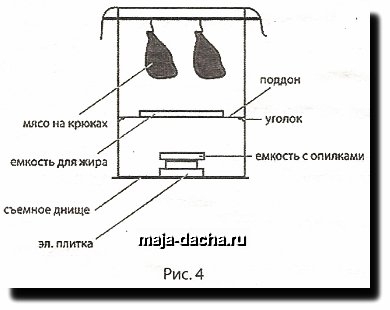 Когда вся конструкция собрана (рис. 3, 4), можно приступать к копчению.