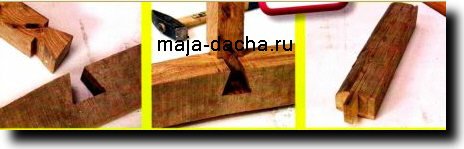 1. B местах соединений нижних продольных лаг с вертикальными опорами прорезаем пазы и шипы типа «ласточкин хвост».