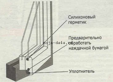 Вначале утепляем сами стекла. Для этого на сопряжение стекла и штапика достаточно нанести герметик, но лучше вынуть стекло и нанести герметик непосредственно на раму. После установки стекла на место оно будет надежно приклеено.