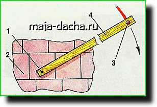Рис. 8. Стойка с основанием: 1 — основание; 2 — стойка; 3 — угольник; 4 — клинья.