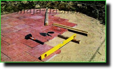 Таким образом, укладка плитки по классической технологии — дело не быстрое. Каждую приходится прикладывать по несколько раз, многократно разравнивать песок, чтобы получить горизонтальную поверхность и нужную толщину подушки.