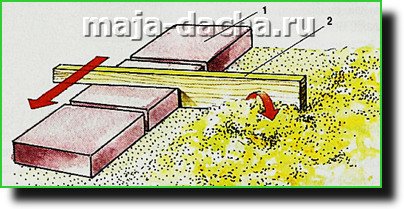 Параллельно размеченным линиям проводят линии для получения врезок под связи-перемычки между основаниями стоек, которые в рассматриваемом случае вырезают из досок сечением 50×150 мм.
